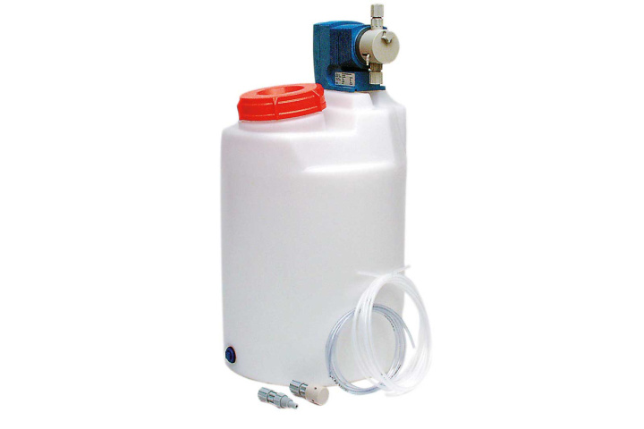 Flockningsstation komplett inkl. kärl 60 l och pump. BETA/4B 0400 samt doserventil, bottenventil, sug- och tryckslang.